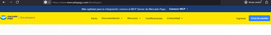 Ingresa al portal de desarrolladores de Mercado Pago: https://www.mercadopago.com/developers